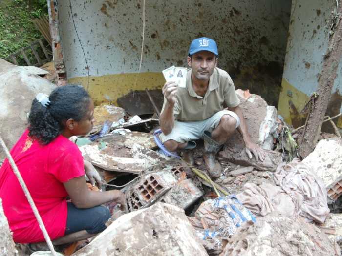 Morador do Morro do Macuco acha documento de identidade em meio aos escombros. Número de casas interditadas após deslizamento de terra ainda não foi divulgado pela Prefeitura de Mauá