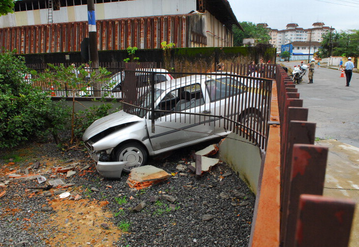 Acidente Entre Dois Carros Deixa muro de casa in destruído Joinville